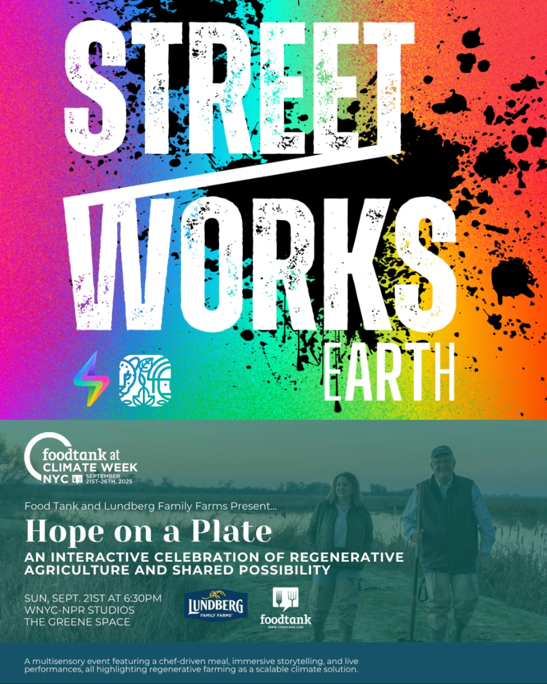 On Sunday evening, The Greene Space in downtown Manhattan was transformed into a living laboratory of flavor, culture, and sustainability. “Hope on a Plate”, presented by Food Tank in partnership with Lundberg Family Farms, was completely sold out — proof of how much interest there is in food as a climate solution.