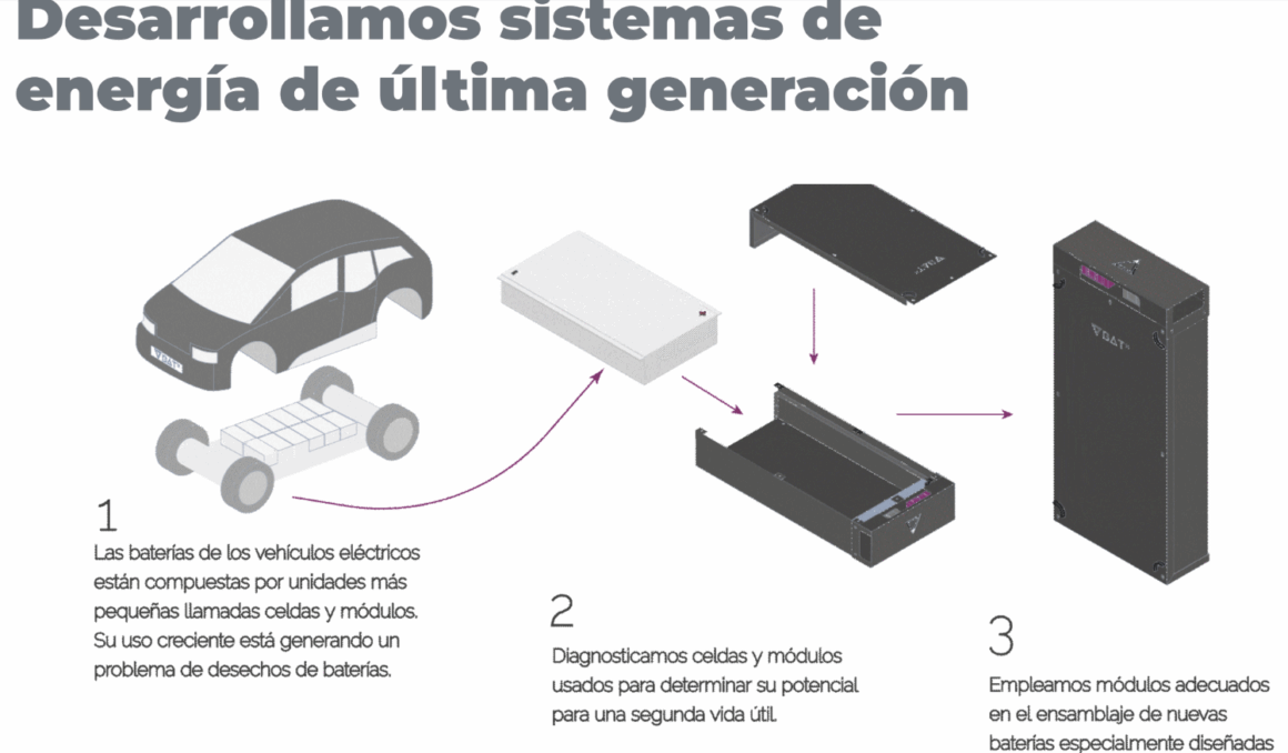 Su enfoque parte de una tecnología propietaria y patentada que permite diagnosticar baterías fuera de uso —especialmente aquellas que provienen de la movilidad eléctrica— para evaluar su estado de salud y vida útil remanente. A partir de esta información, BATX remanufactura los módulos aptos y los transforma en sistemas de almacenamiento estacionario, ideales para el aprovechamiento de energía solar y otras fuentes renovables.