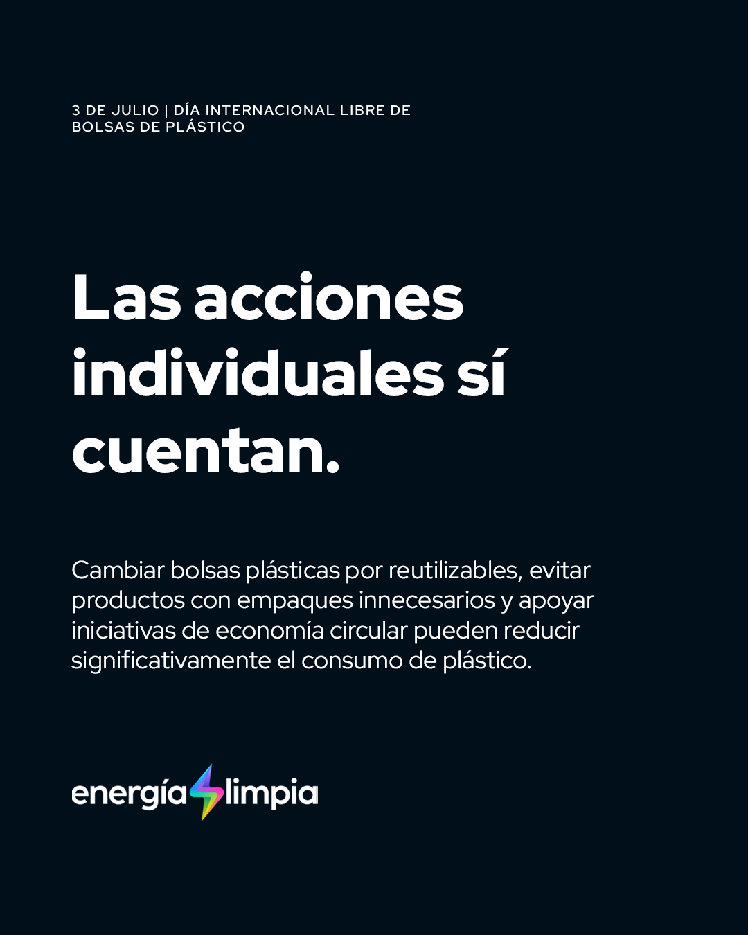…la sostenibilidad empieza en lo cotidiano. Evitar el uso de una bolsa plástica hoy, significa menos microplásticos mañana, menos petróleo explorado y menos fauna afectada. Con datos, inspiración y compromiso, queremos movilizar a nuestro equipo, aliados y comunidad.
